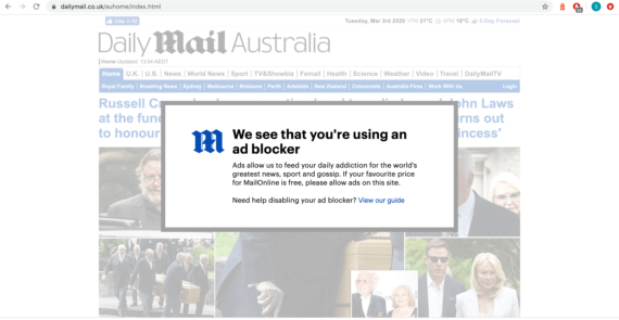 Many sites require advertising revenue to operate and have taken the step of blocking people from accessing a site with an active ad blocker.