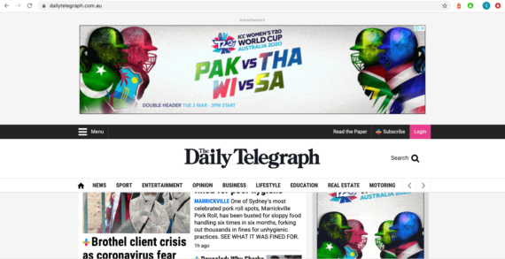 As you can see, without an ad blocker, ads are clearly visible on the Daily Telegraph page. In fact, they take up the majority of screen real estate.